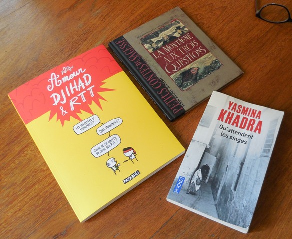 Lectures du vendredi 19 octobre 2018 : BD "Amour, djihad et RTT" (Marc Dubuisson) + "La Montagne aux trois questions" (Béatrice Tanaka, Chen Jiang Hong) + poursuite de "Qu'attendent les singes" (Yasmina Khadra).