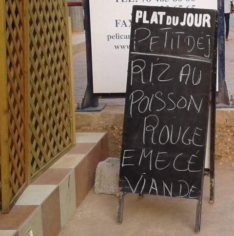 Encore une histoire de menu intrigant. Si j'avais eu à choisir entre du poisson à la couleur douteuse et de la viande peut-être éméchée, j'aurais opté pour une salade. Et un café sans l'addition s'il vous plaît...